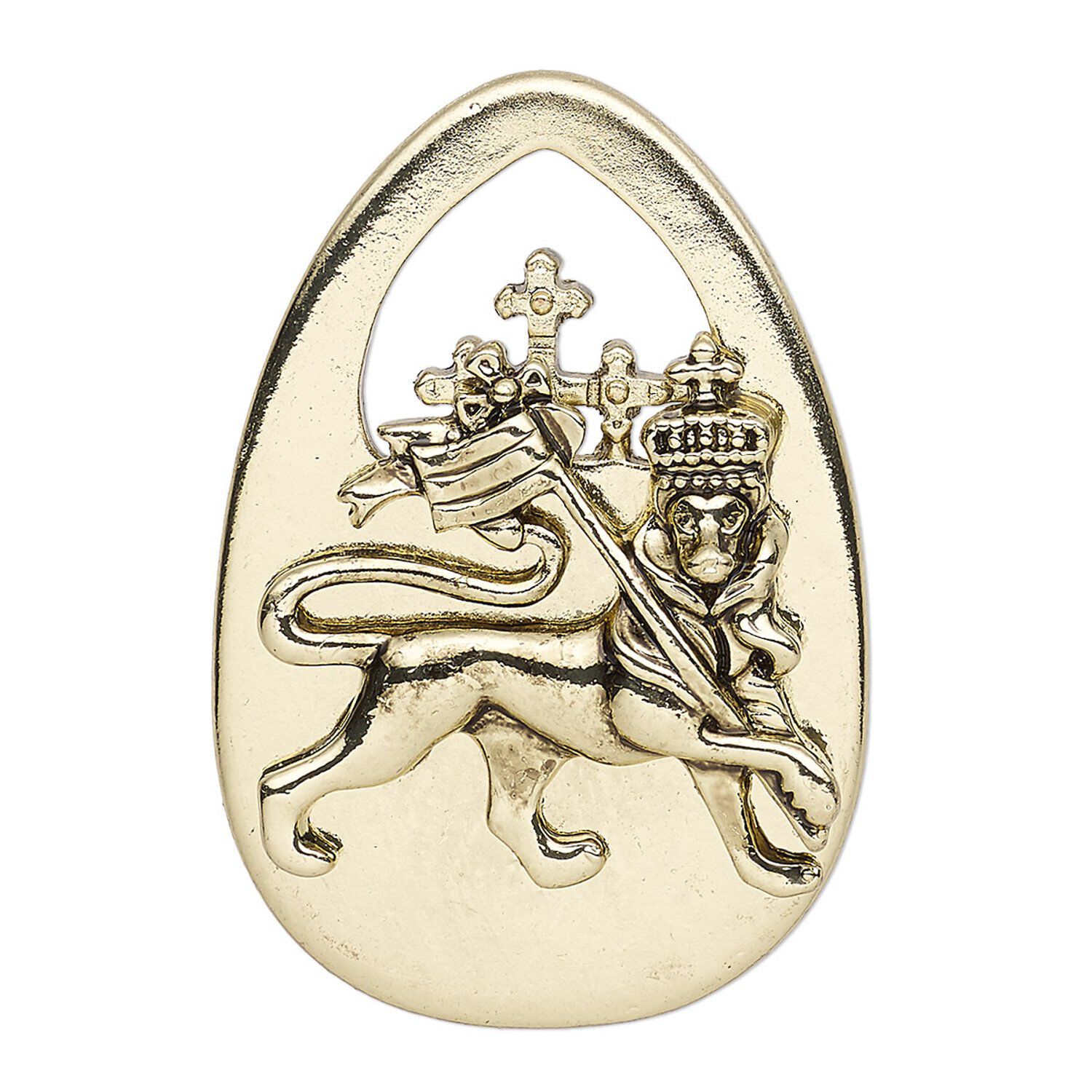 These intricate lion, crown and scepter focal components were inspired by talisman, or amulet, jewelry. This type of jewelry is often believed to become a token of good luck that brings joy, positive action or good memories to the wearer. These expressions, often based on sacred symbols of ancient traditions, religions or mystical concepts, are reinvented for modern trends in long-lasting "pewter" (zinc-based alloy) with an attractive antique gold finish.