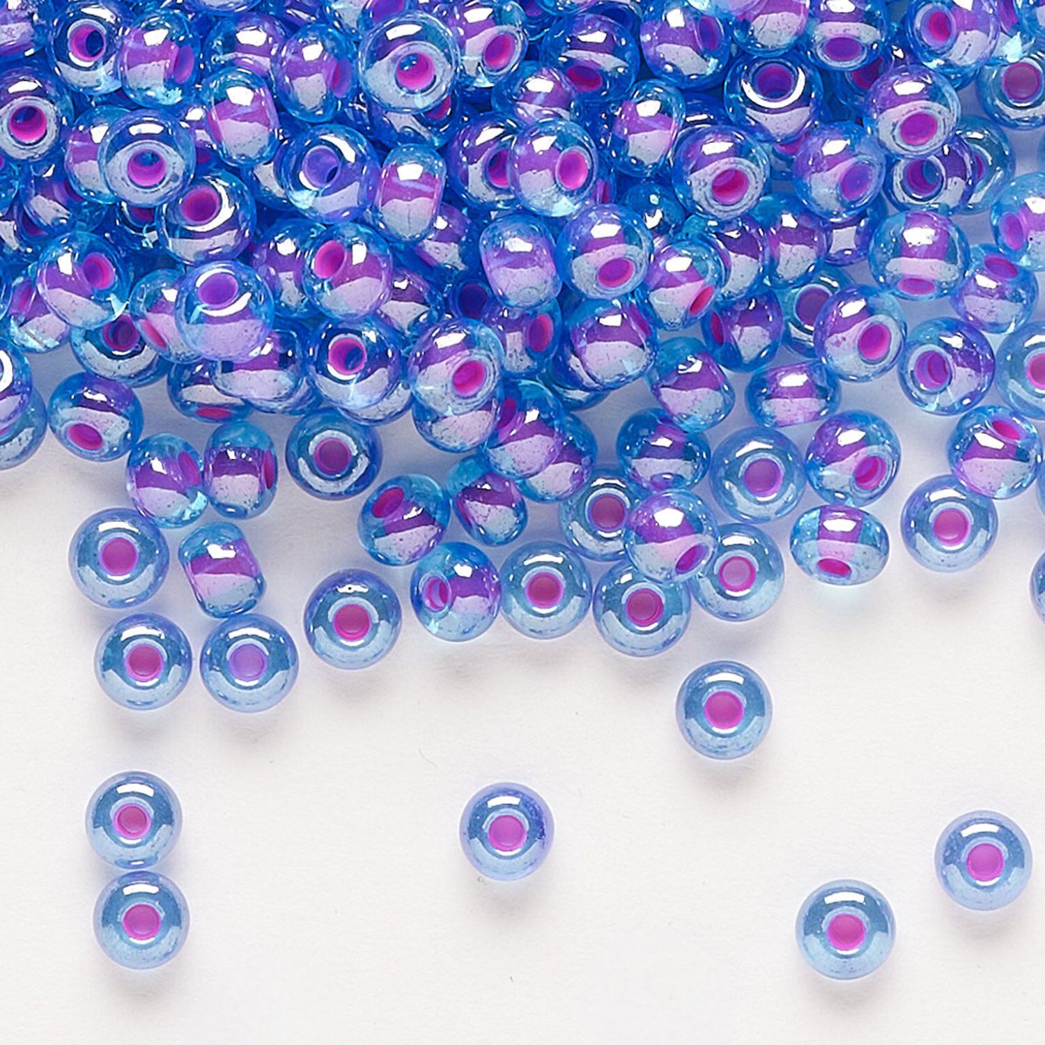 Seed bead, Preciosa Ornela Czech glass, pkg/50g, #6 rocaille, translucent pink-lined luster aquamarine, (61016).