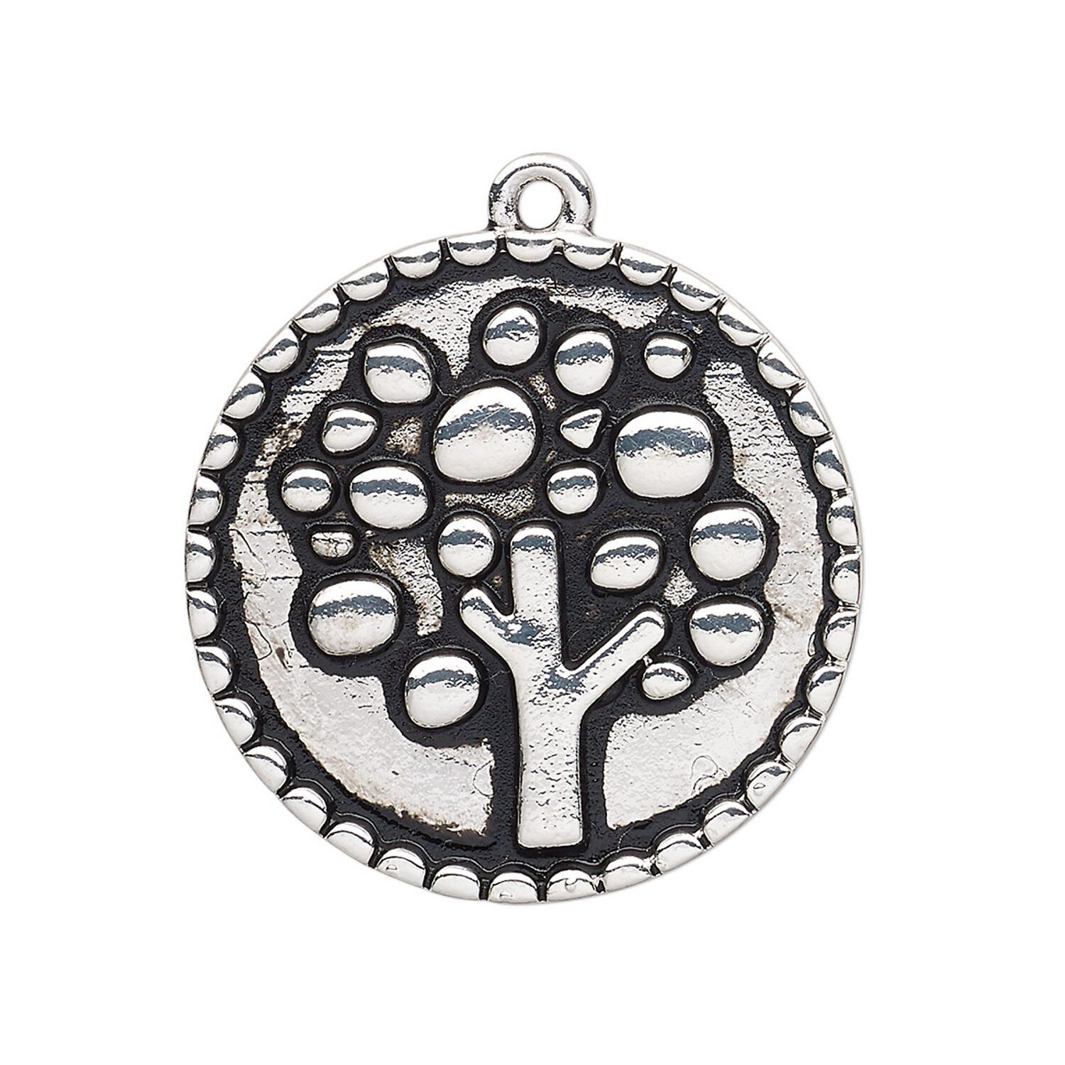 These intricate round focal components with tree designs were inspired by talisman, or amulet, jewelry. This type of jewelry is often believed to become a token of good luck that brings joy, positive action or good memories to the wearer. These expressions, often based on sacred symbols of ancient traditions, religions or mystical concepts, are reinvented for modern trends in long-lasting "pewter" (zinc-based alloy) with an attractive antique silver finish.