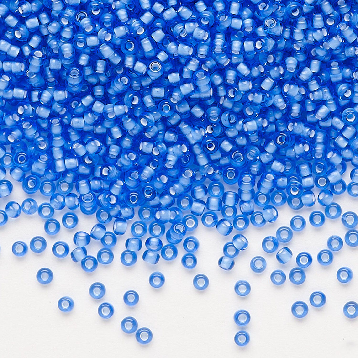 Seed bead, Preciosa Ornela, glass, transparent chalkwhite-lined light sapphire, #11 rocaille. Sold per 500-gram pkg.