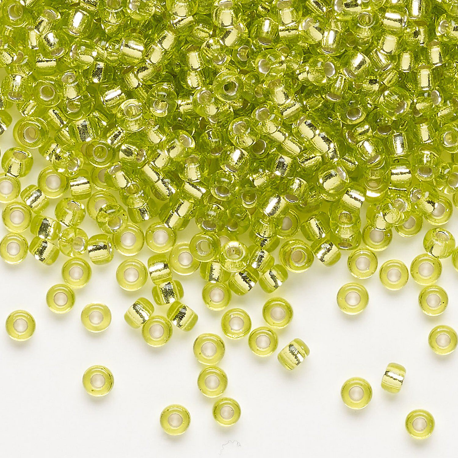 Seed bead, Miyuki, glass, pkg/50g, #8 rocaille, transparent silver-lined chartreuse (RR-14).