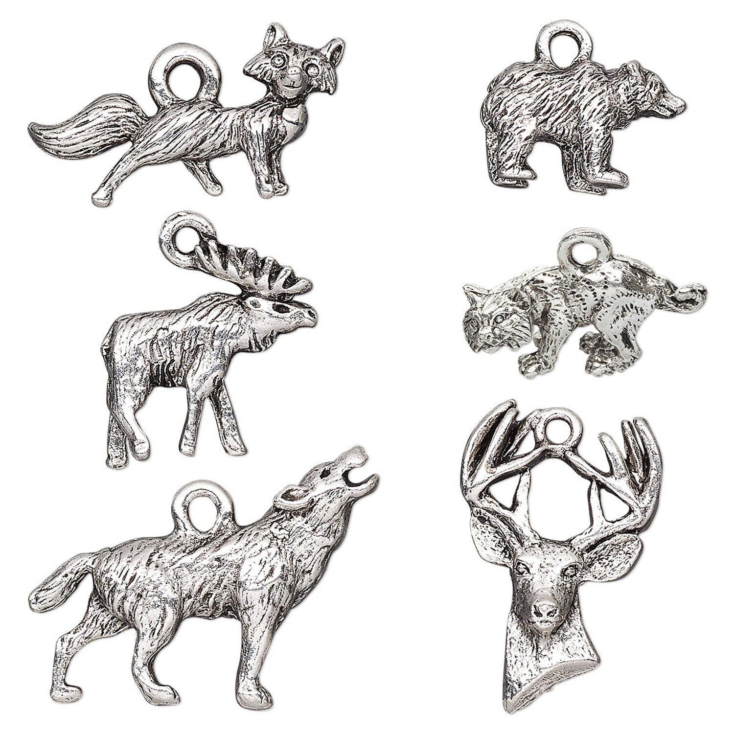 Nature continues to be a strong style influence for jewelry and fashion. These highly detailed three-dimensional and two-sided charms have crisp details enhanced by an antique silver plating. Shapes can include moose, bear, fox and more.