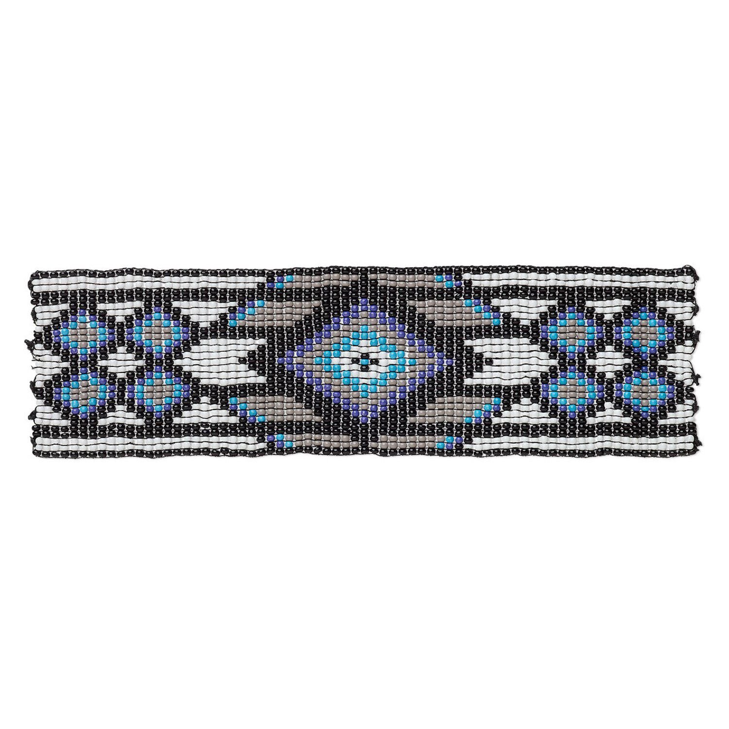 Loomed by hand from world-renowned Miyuki seed beads, and featuring a precisely designed geometric pattern, this component is a dynamic starting point for jewelry or fashion accessory projects. Use in cell phone cover designs, add cabochons or other embellishments for bracelets and much more. Ends are knotted for extra security. Colors can include white, black, purple, blue and grey. Sizes, shapes and colors may vary with handcrafted items. Items are made with solid color glass, which means the base color of the glass is saturated throughout the object and will not fade or rub off over time.