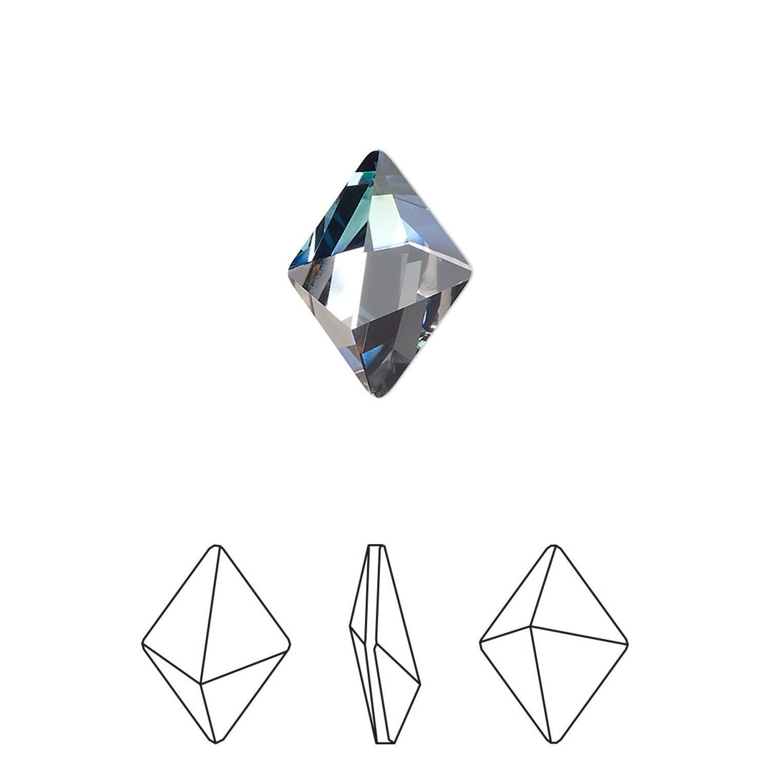 The tilted spike fancy stone, with dual-terminated ends, presents a new take on unisex shapes in urban-inspired fashion. With a partly coated effect, this fancy stone serves as a base for creating new and exciting patterns. The unique look takes a generic shape and combines it with new, modern technology for partly applied effects, resulting in a precision-cut surface that creates an optical illusion. Specially made calibrated faceted tilted spike settings make it a cinch to design with these fancy stones.