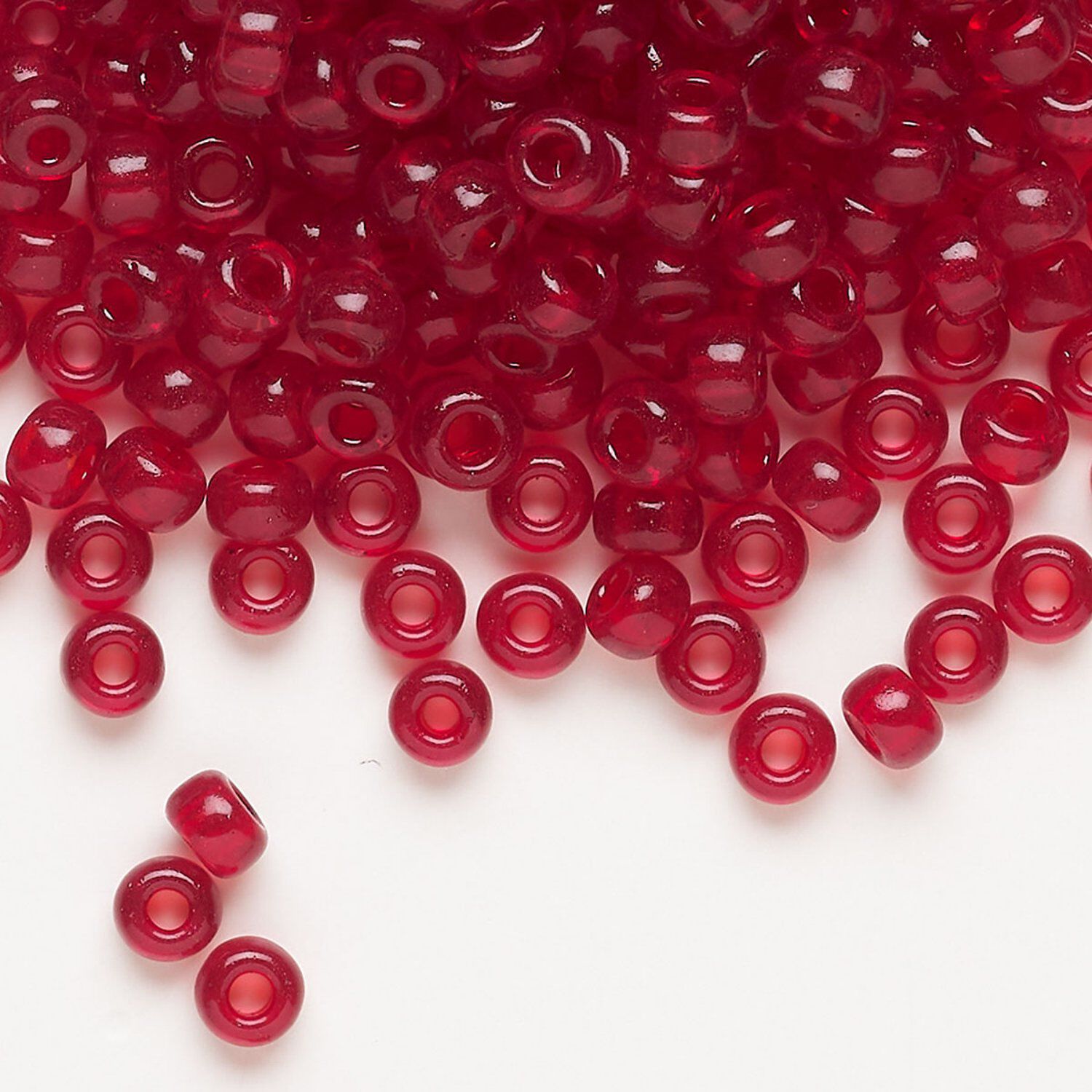 Seed bead, Miyuki, glass, pkg/25g, #6 rocaille, transparent dark ruby (RR-141D).