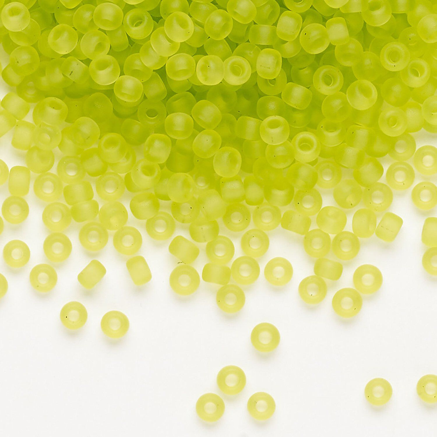 Seed bead, Miyuki, glass, pkg/250g, #8 rocaille, translucent matte chartreuse (RR-143F).