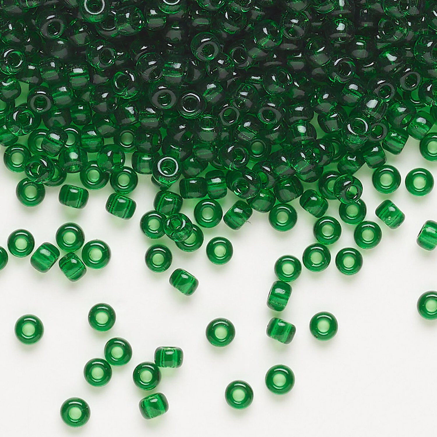 Seed bead, Miyuki, glass, pkg/50g, #8 rocaille, transparent green (RR-146).