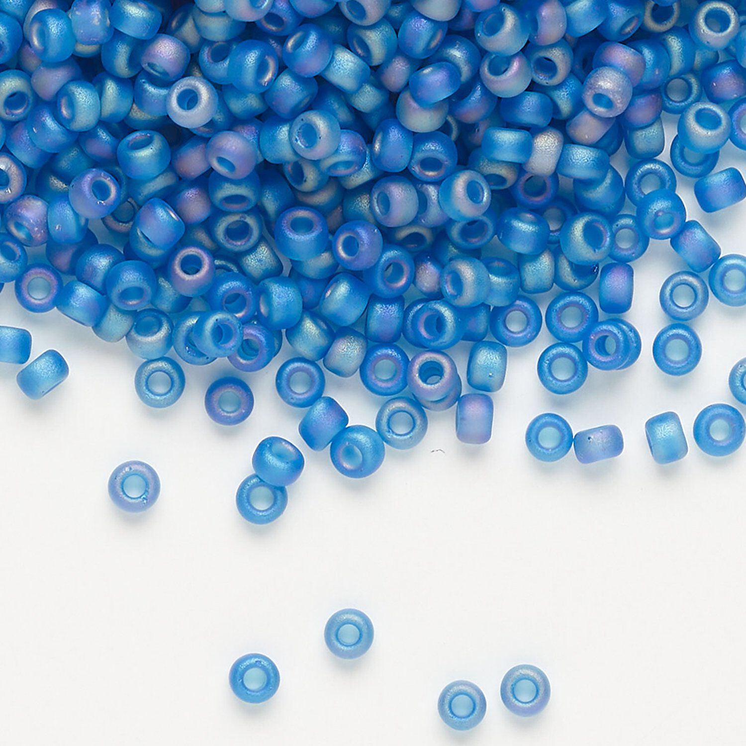 Seed bead, Miyuki, glass, pkg/250g, #8 rocaille, translucent matte rainbow Capri blue (RR-149FR).
