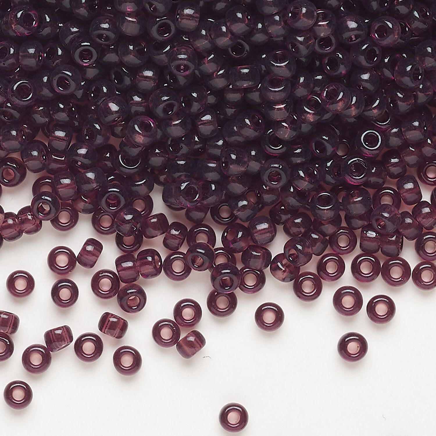 Seed bead, Miyuki, glass, pkg/50g, #8 rocaille, transparent dark smoky amethyst (RR-153).