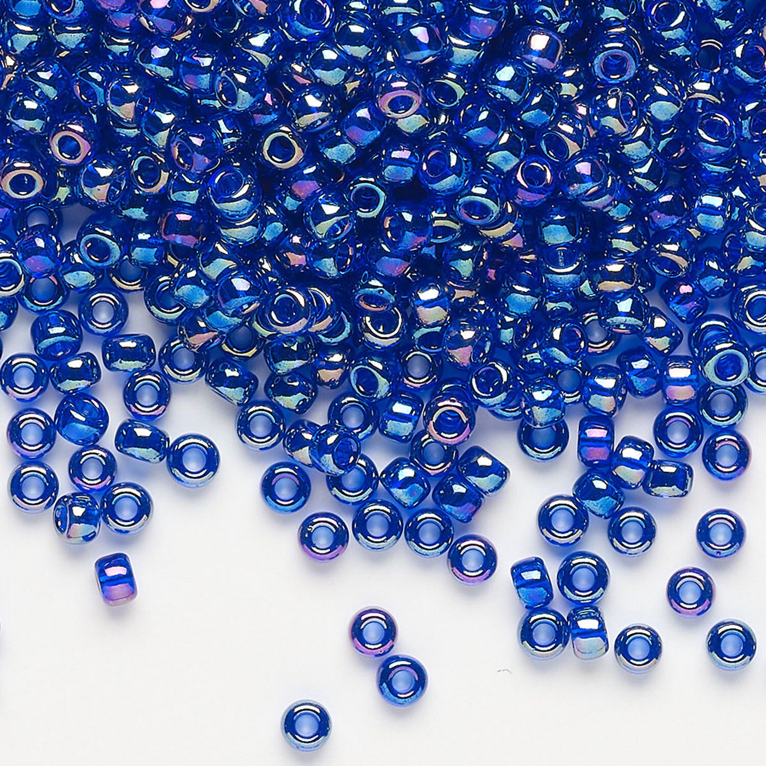 Seed bead, Miyuki, glass, pkg/250g, #8 rocaille, translucent rainbow cobalt (RR-177).