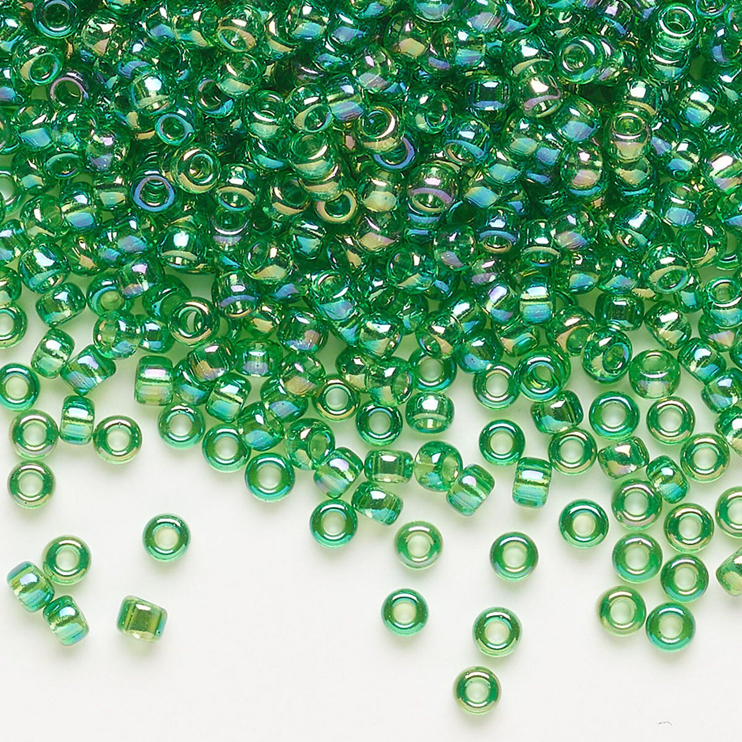Seed bead, Miyuki, glass, pkg/50g, #8 rocaille, translucent rainbow green (RR-179L).