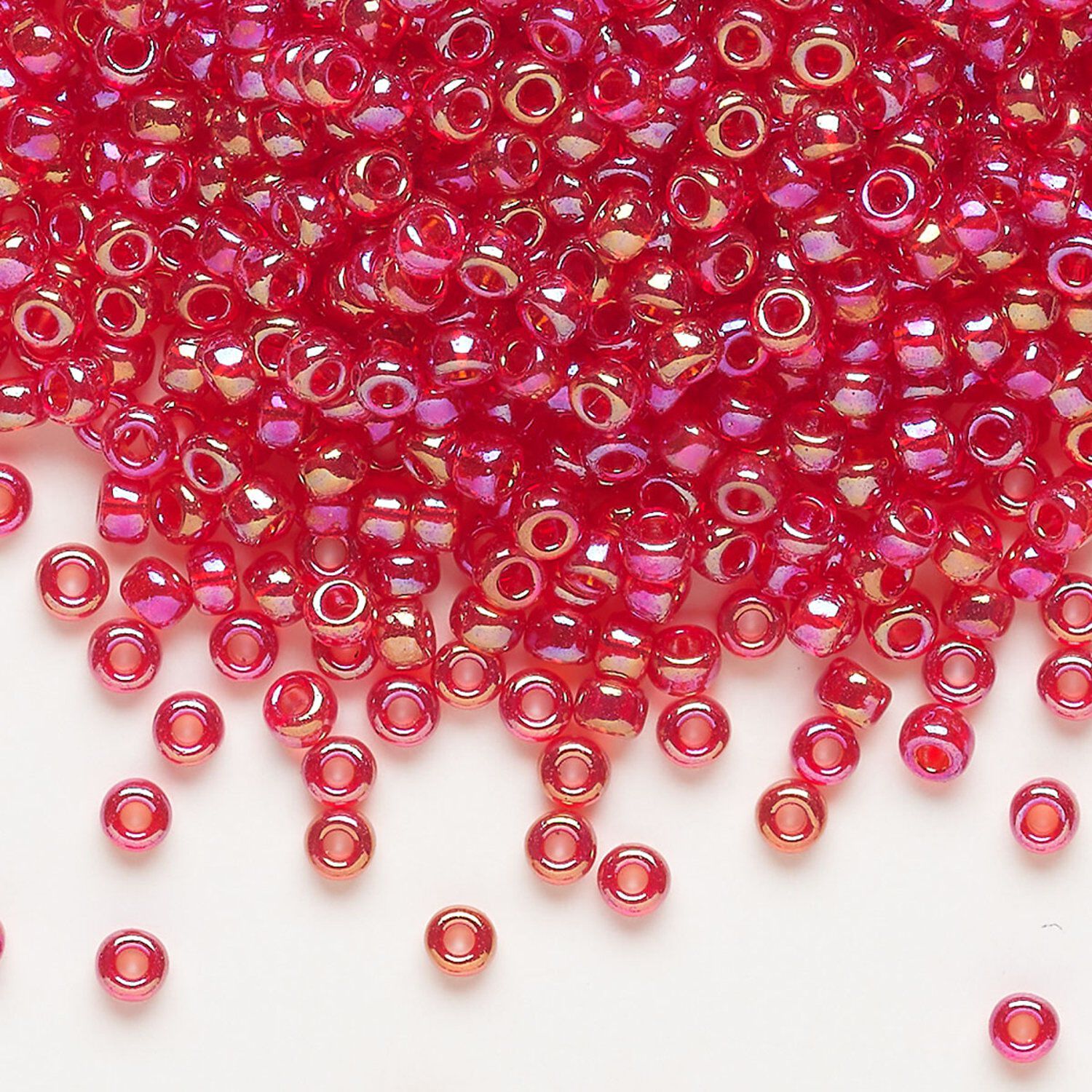 Seed bead, Miyuki, glass, pkg/250g, #8 rocaille, translucent rainbow red (RR-254).