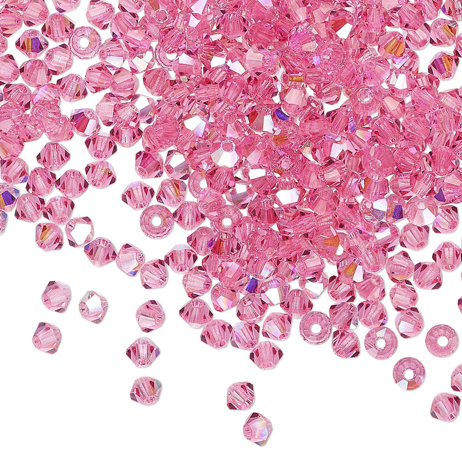 Bead 144pk rose AB, Preciosa Czech crystal 3mm bicone