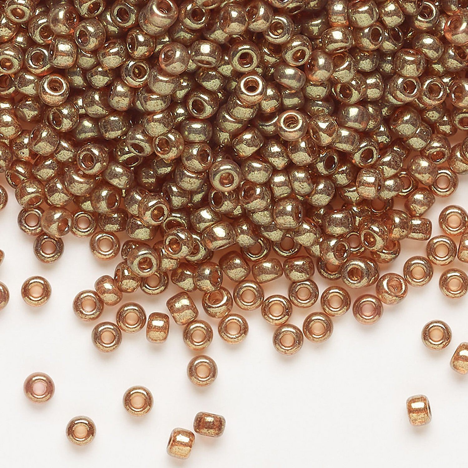 Seed bead, Miyuki, glass, pkg/250g, #8 rocaille, translucent gold luster topaz (RR-311).