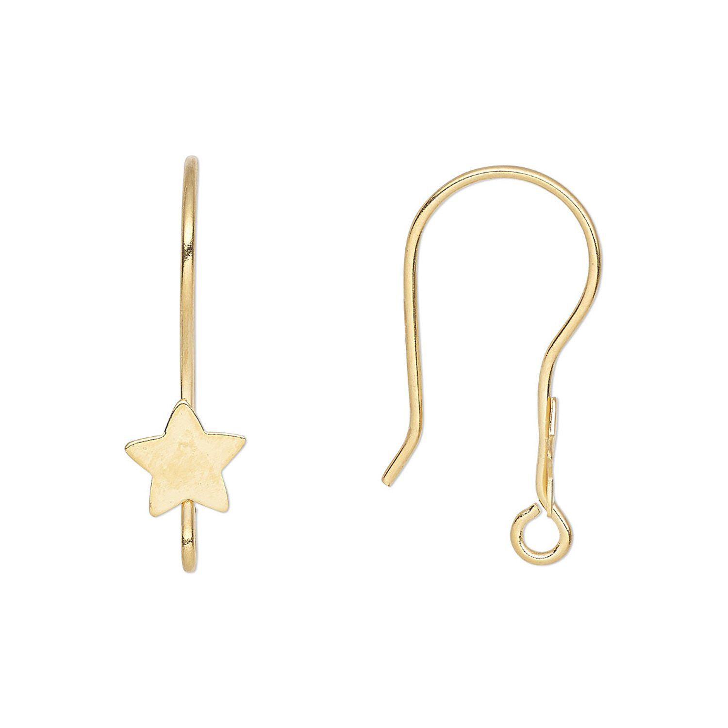 Ear wire fishhook 1pkg10 gold-plated, 21mm / star / open loop, 21 gauge stainless steel 5 pair
