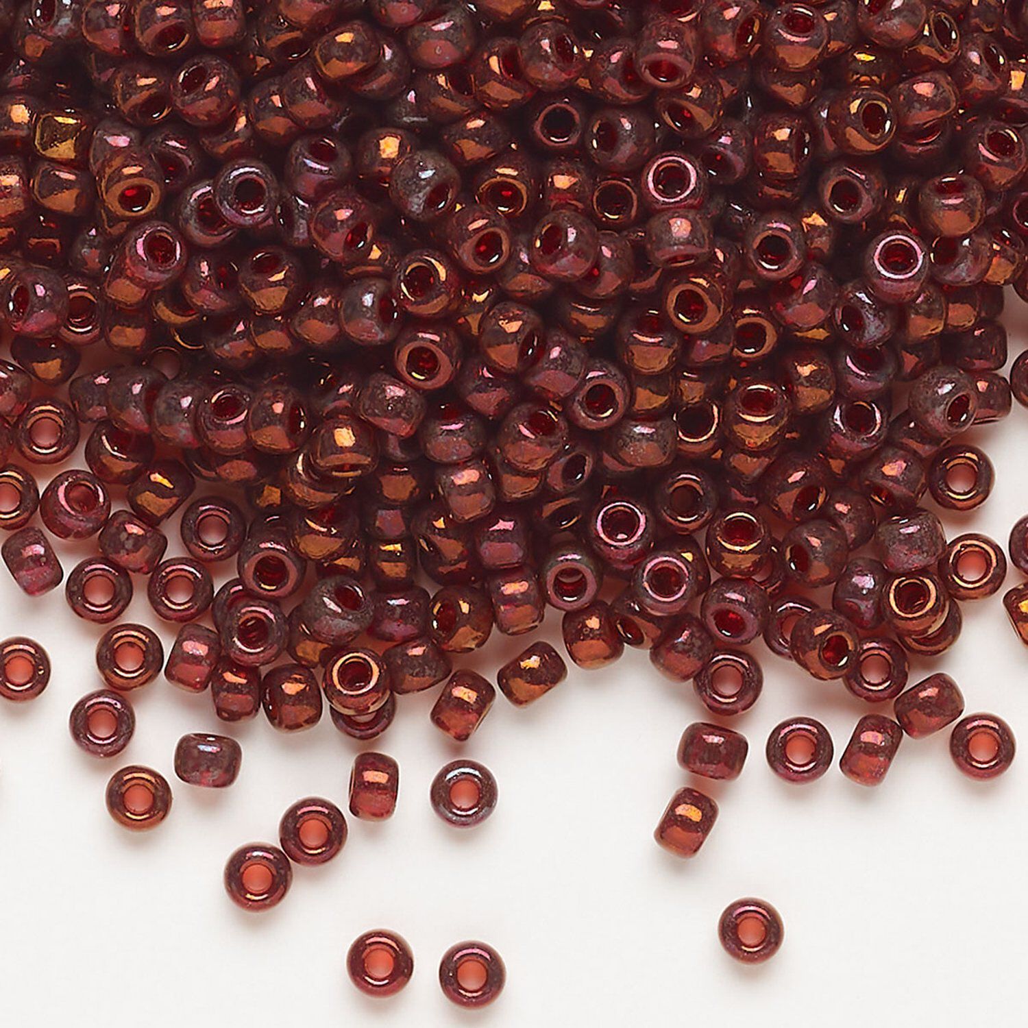 Seed bead, Miyuki, glass, pkg/250g, #8 rocaille, translucent gold luster garnet (RR-315).