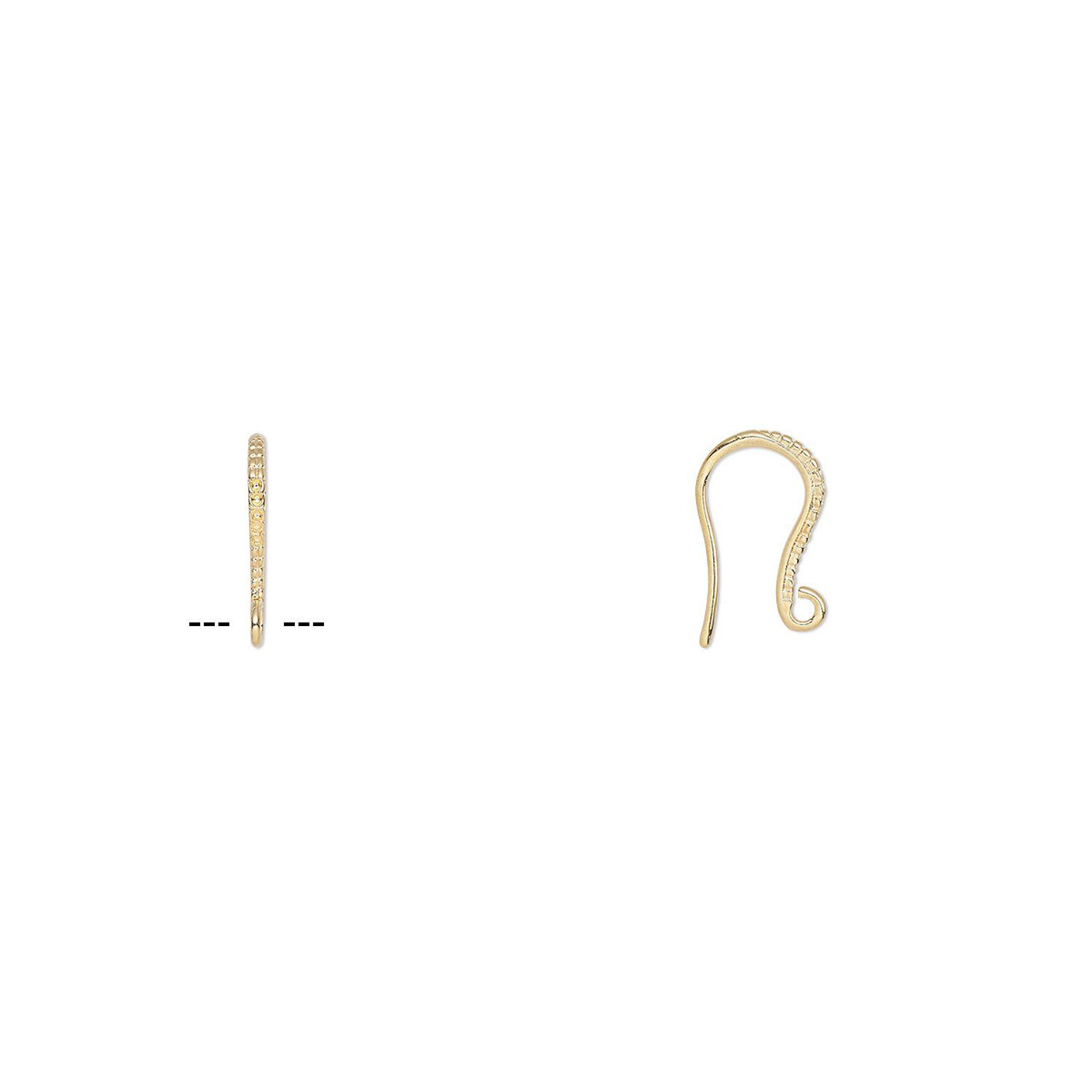 Ear wire fishhook 1pkg100 gold-plated, 16mm textured / open loop, 20 gauge brass 50 pair