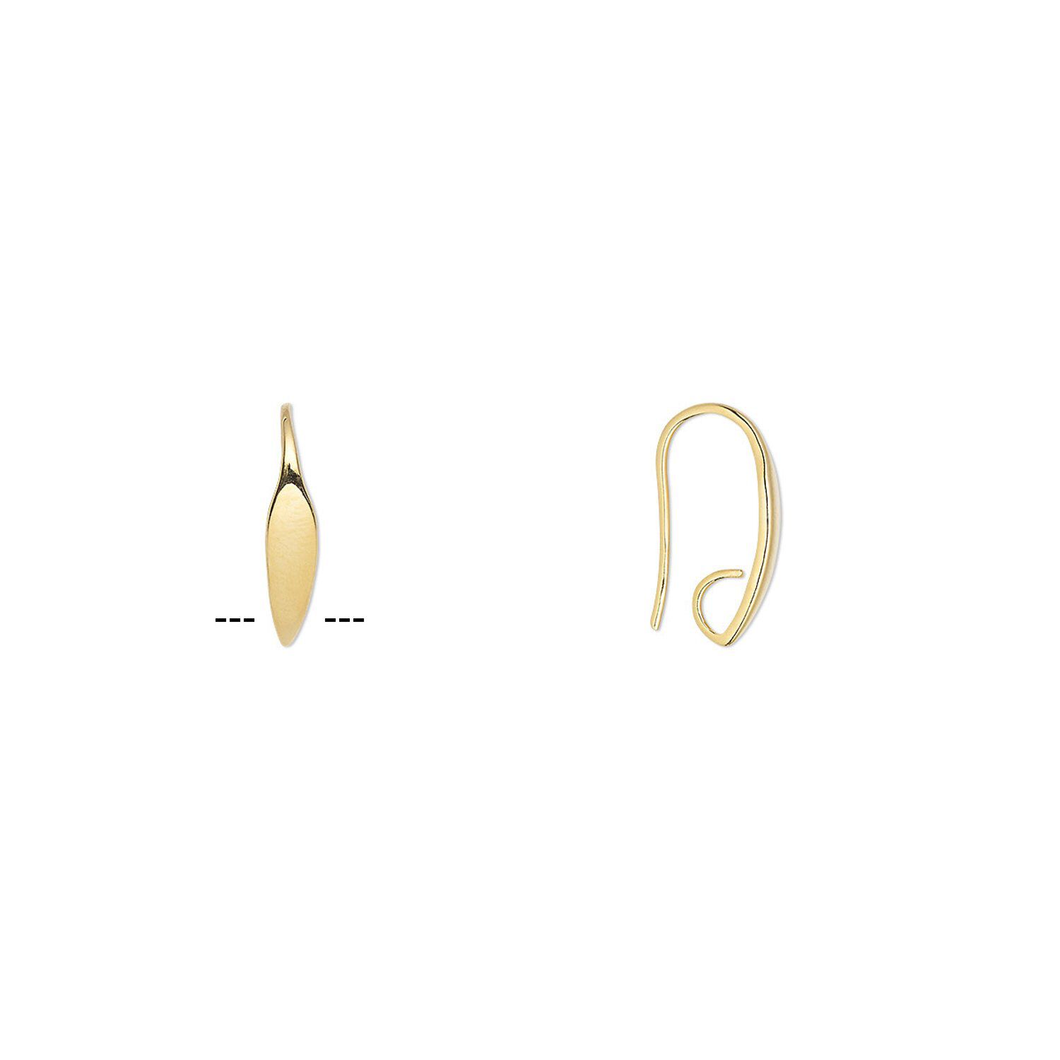 Ear wire fishhook 1pkg100 gold-plated, 19.5mm leaf / hidden open loop, 19 gauge brass 50 pair