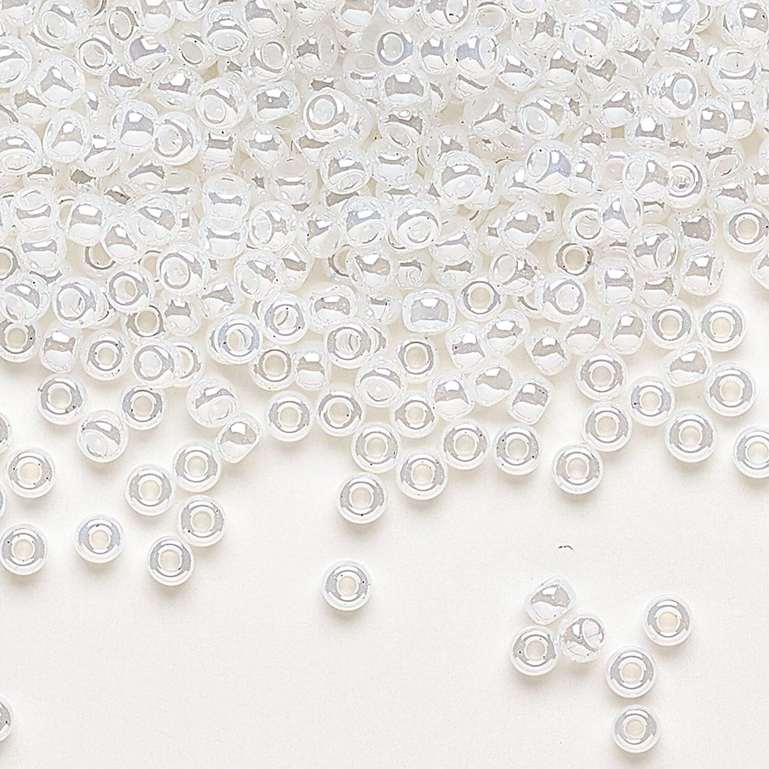 Seed bead, Miyuki, glass, pkg/250g, #8 rocaille, translucent luster opal (RR-511).