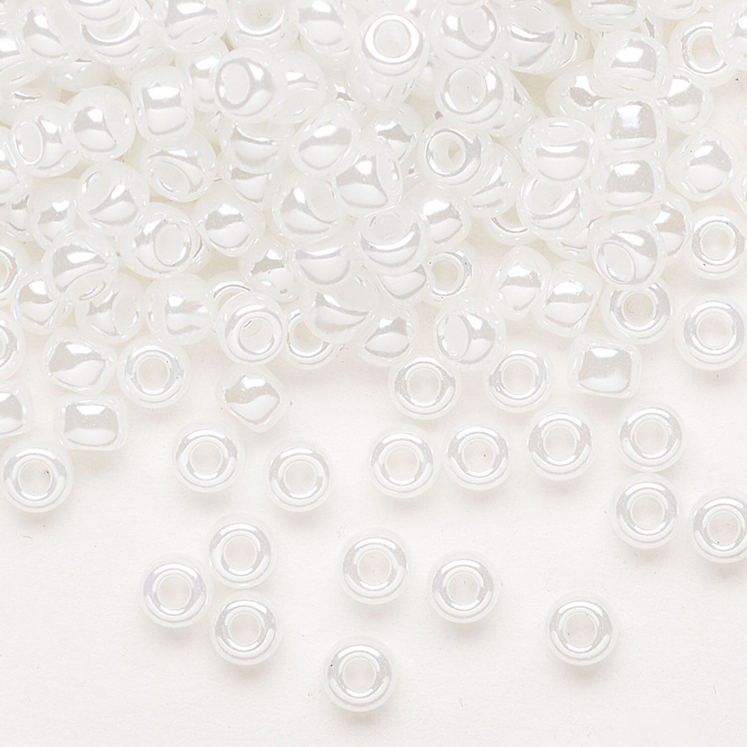 Seed bead, Miyuki, glass, pkg/25g, #6 rocaille, translucent luster white (RR-511).