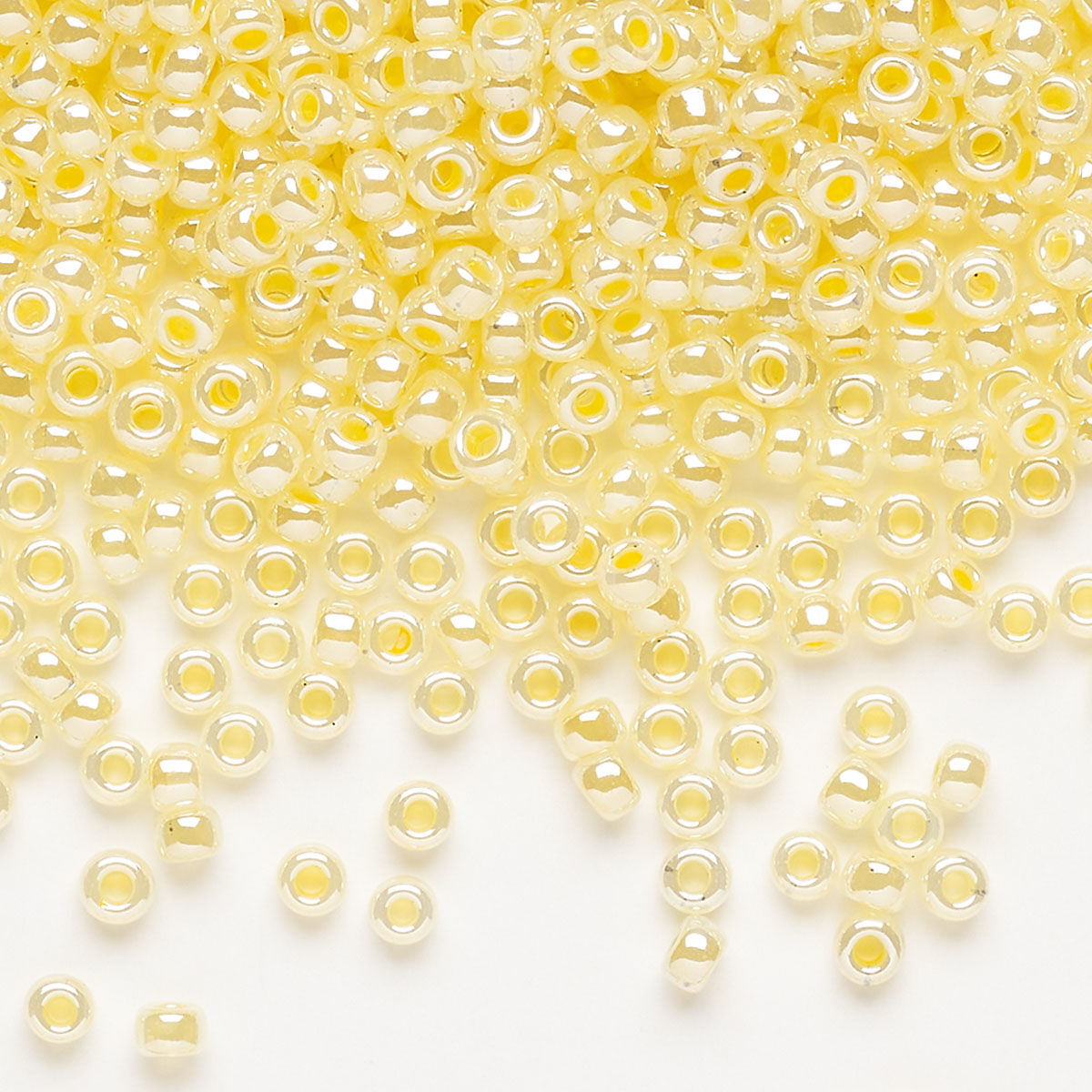 Seed bead, Miyuki, glass, pkg/250g, #8 rocaille, opaque inside dyed color luster light daffodil (RR-516).