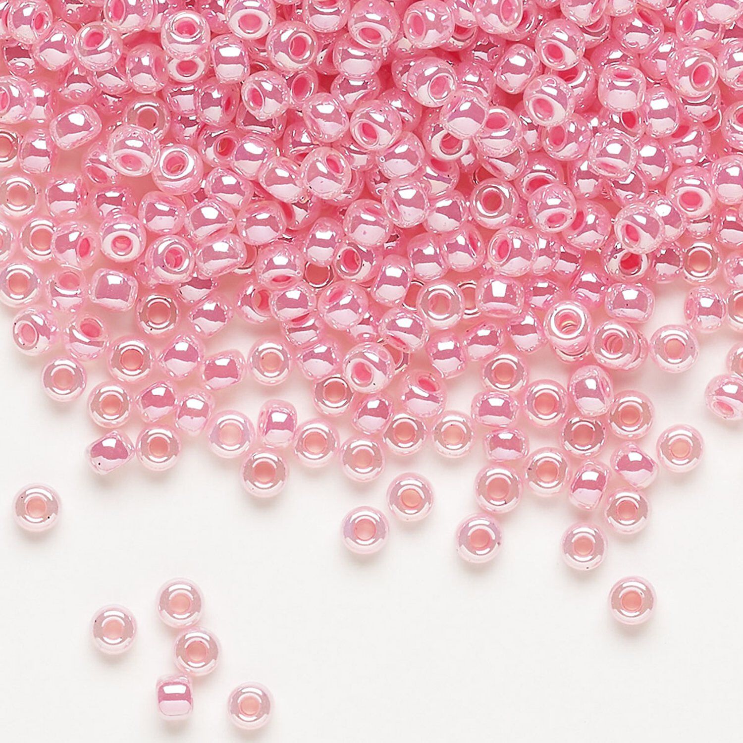 Seed bead, Miyuki, glass, pkg/250g, #8 rocaille, opaque carnation pink luster alabaster (RR-535).