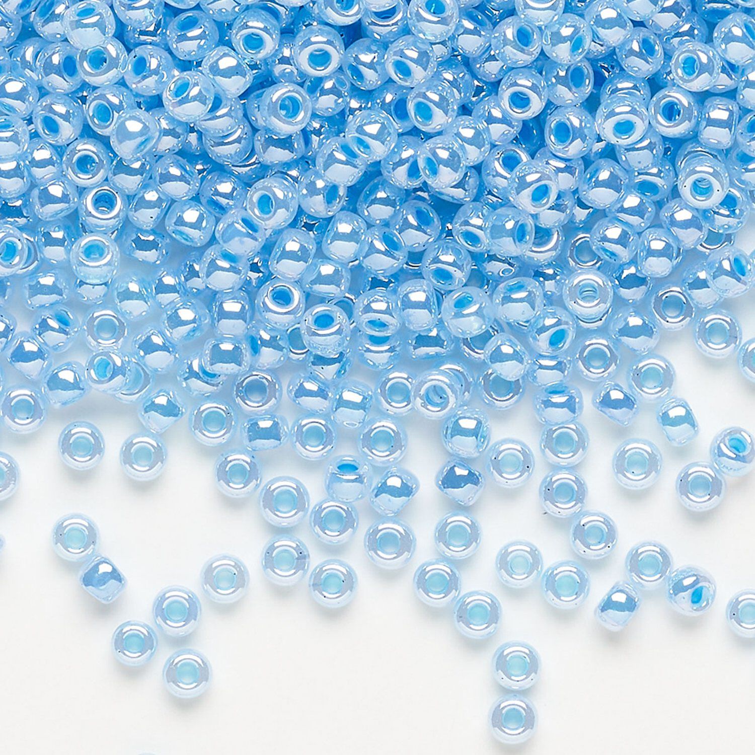 Seed bead, Miyuki, glass, pkg/50g, #8 rocaille, opaque blue luster alabaster (RR-537).