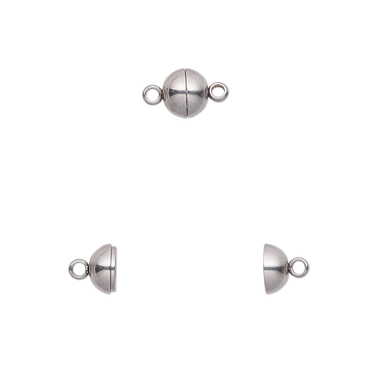 Clasp, magnetic, stainless steel, 6mm round. Sold individually.