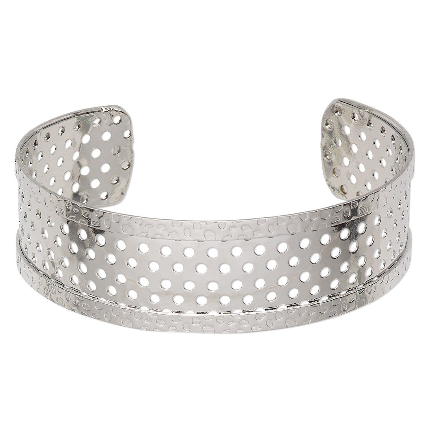 The cutout mesh-style cuff bracelet is great for embellishment or for wearing as is. Wire wrap with chips, seed beads or other components. Attach chains, charms or dangles.