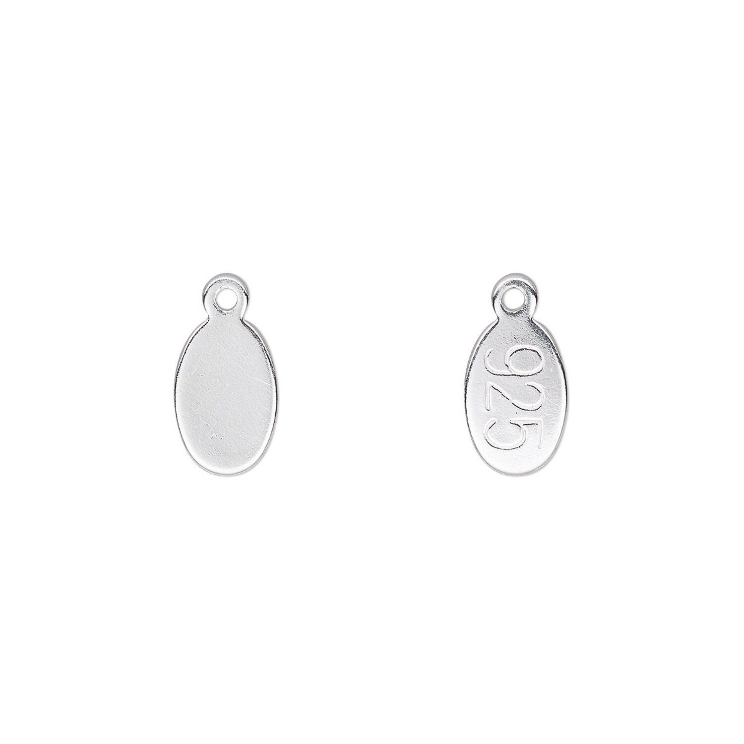 Drop, sterling silver, 9x6mm two-sided flat oval. Sold per pkg of 2.