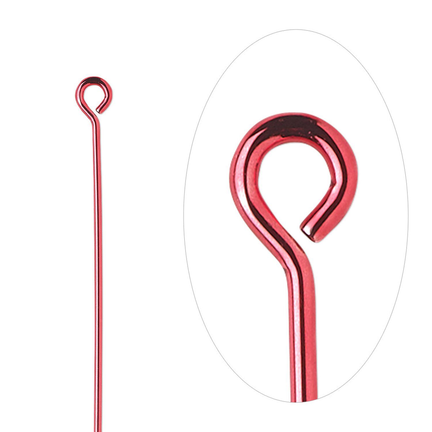Eye pin, electro-coated brass, red, 2 inches, 21 gauge. Sold per pkg of 10.