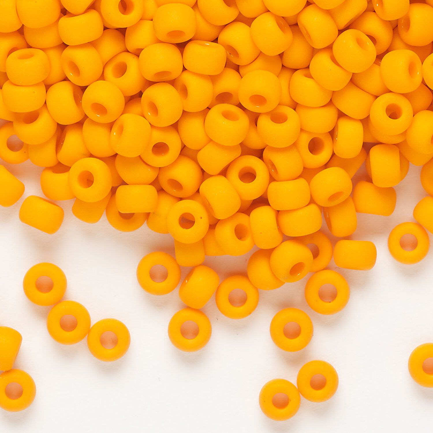 Seed bead, Miyuki, glass, pkg/250g, #6 rocaille, opaque matte mandarin orange (RR-405F).