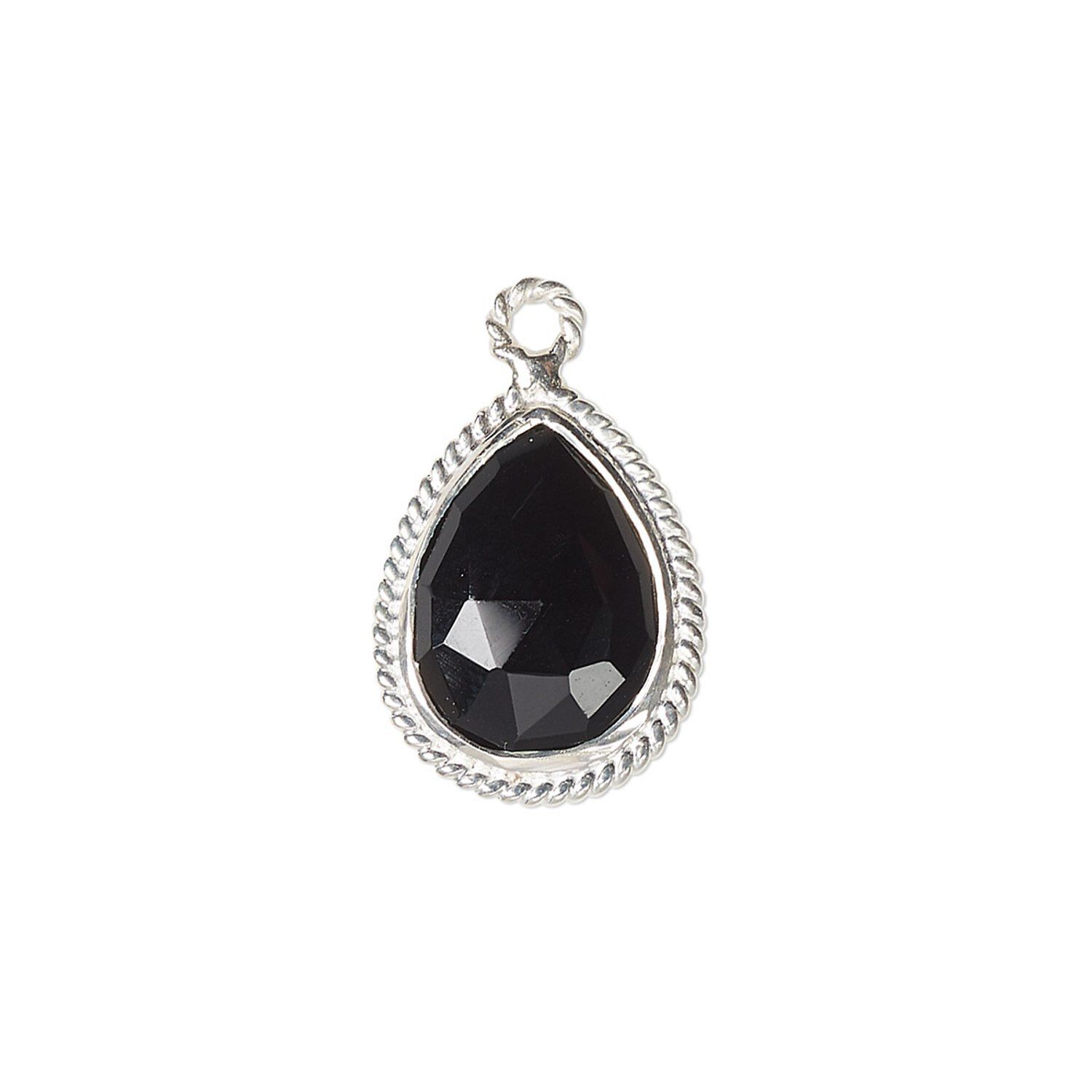 Add the always-in-fashion, sleek color of black to jewelry with this black onyx faceted teardrop complete with a twisted wire frame and loop of sterling silver for easy attachment. Black onyx is a favorite gemstone material for creating unisex designs. Sizes, shapes and colors may vary with handcrafted items.