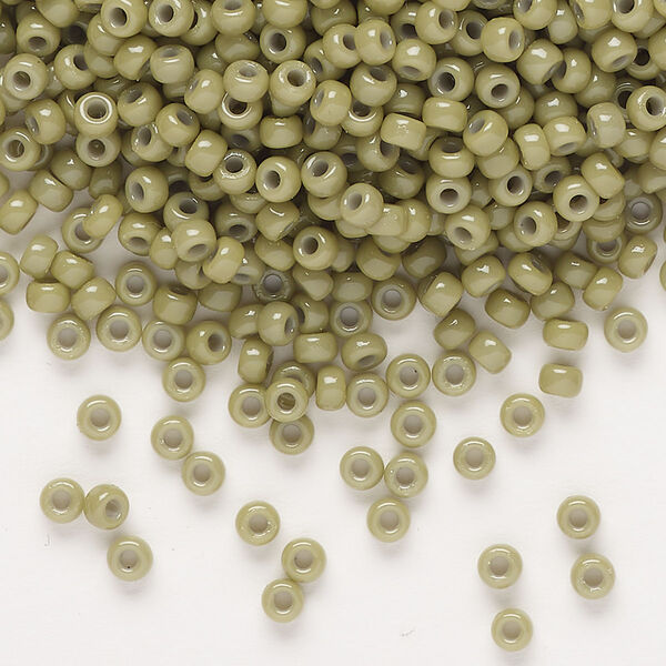 Seed bead, Miyuki, glass, pkg/250g, #8 rocaille, Duracoat® opaque outside dyed cactus (RR-4474).
