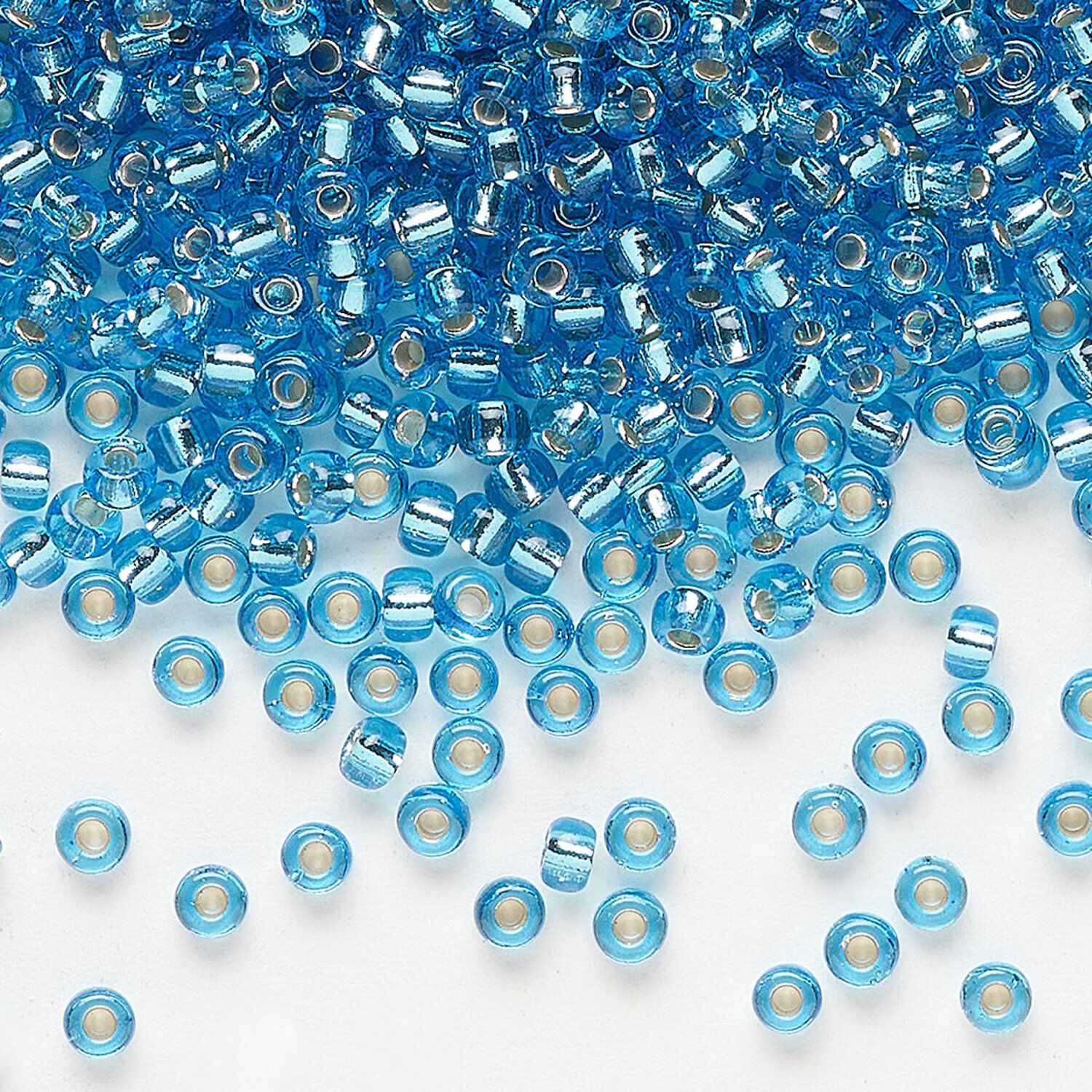 Seed bead, Miyuki, glass, pkg/250g, #8 rocaille, transparent silver-lined ocean blue (RR-2429).