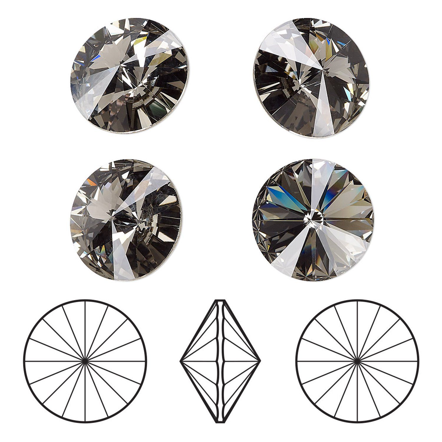 Chaton 144pk black diamond foil back, Swarovski® 14mm rivoli 1122