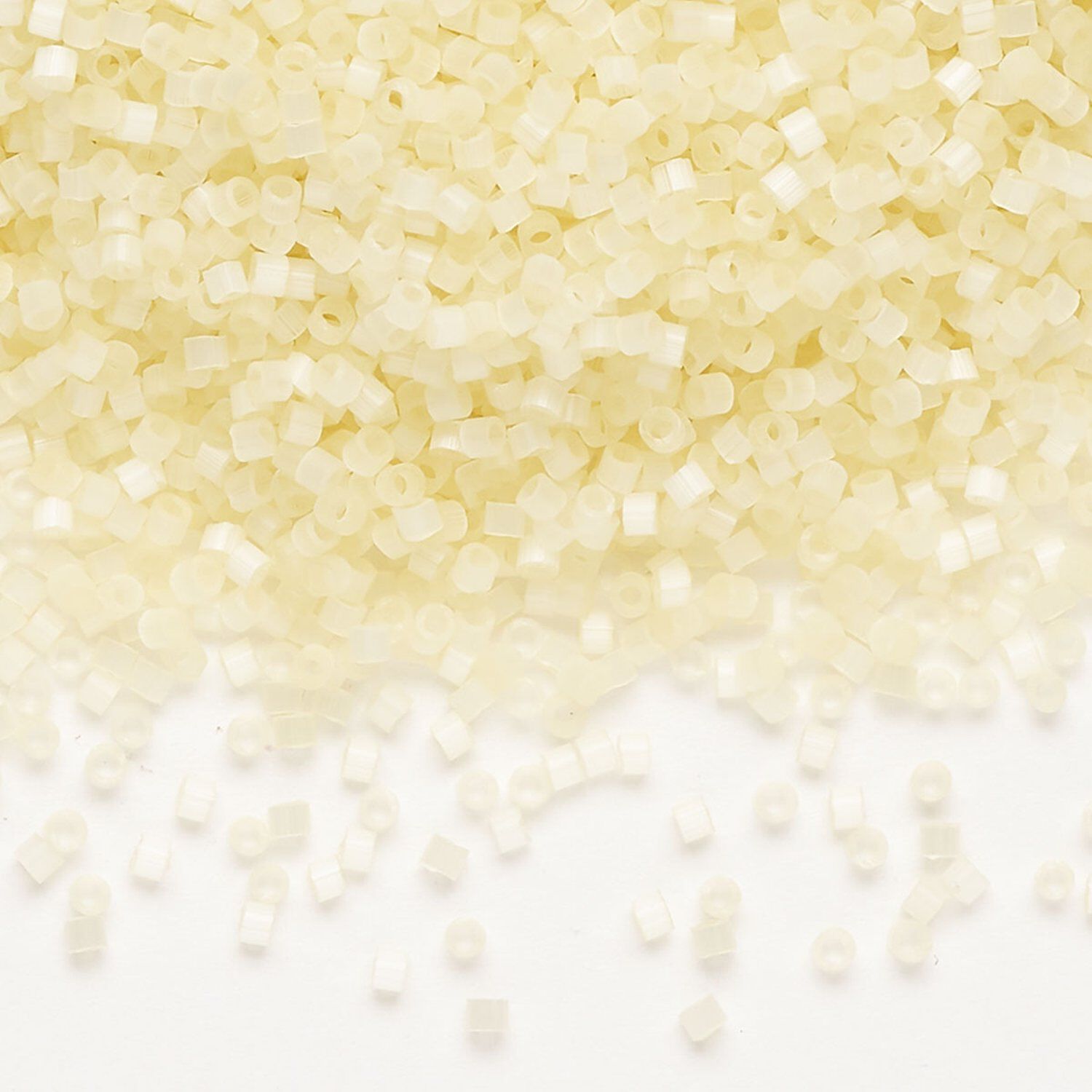 Seed bead, Delica®, glass, pkg/50g, #11 round, opaque silk glass enamel lemon ice (DB-0823-1).