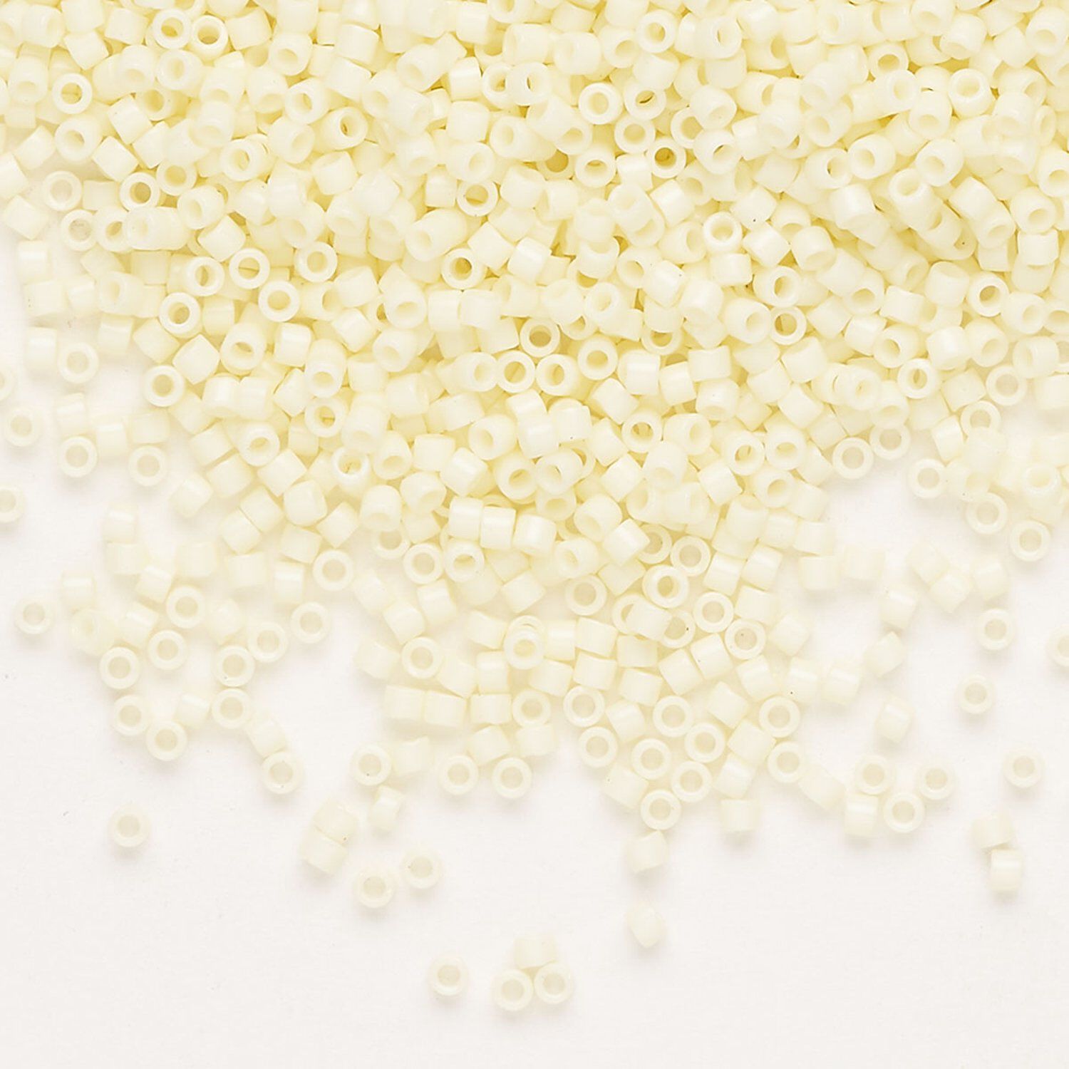 Seed bead, Delica®, glass, pkg/250g, #11 round, opaque glass enamel pale yellow (DB-1491-1).