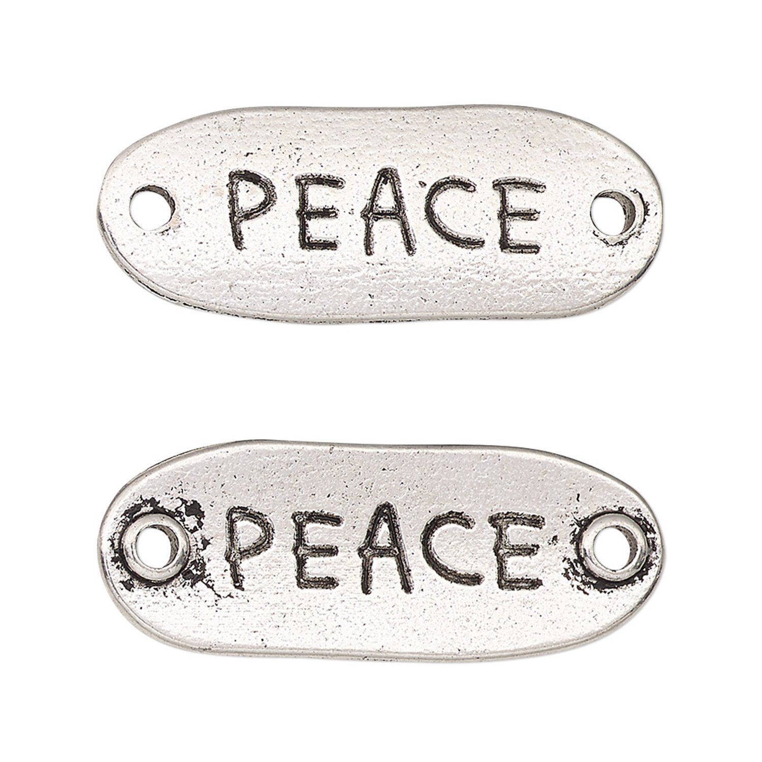 Link, antique silver-finished "pewter" (zinc-based alloy), 33x13mm two-sided oval with "PEACE." Sold per pkg of 2.