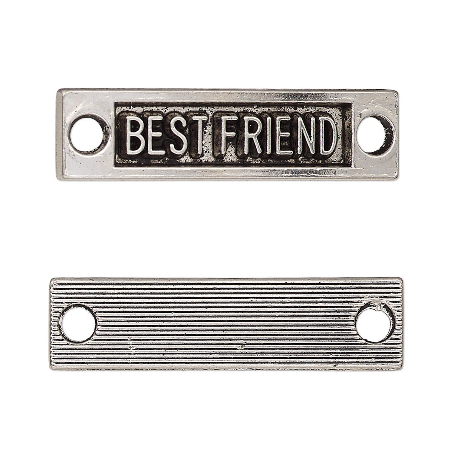 Link, antique silver-finished "pewter" (zinc-based alloy), 34x9mm single-sided curved flat rectangle with "BEST FRIEND." Sold per pkg of 2.