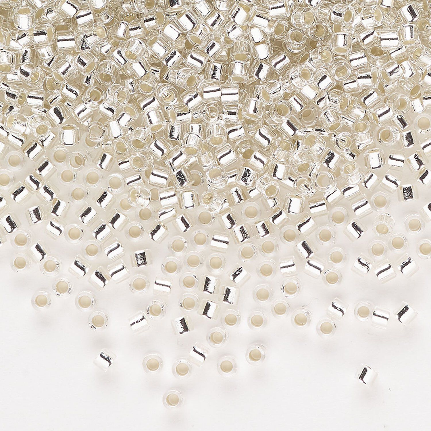 Seed bead, Delica®, glass, pkg/50g, #10 round, transparent silver-lined crystal clear (DBM-0041).