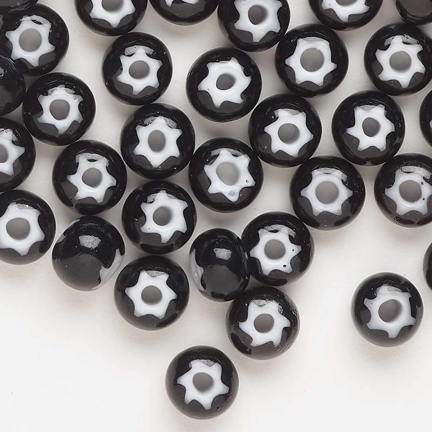 Seed bead, Preciosa Ornela Czech glass, pkg/200g, #32 cornelian star rocaille, opaque black and white, (23798).