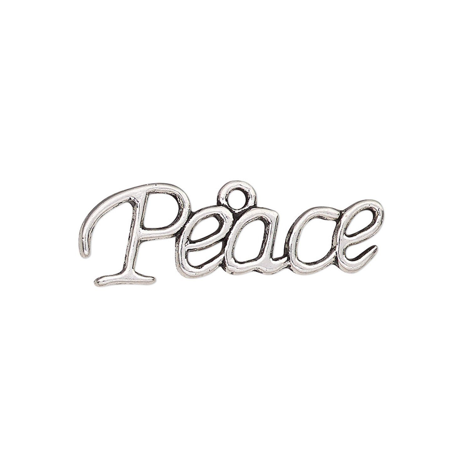 Drop, antique silver-finished "pewter" (zinc-based alloy), 28x9.5mm single-sided "Peace." Sold per pkg of 2.