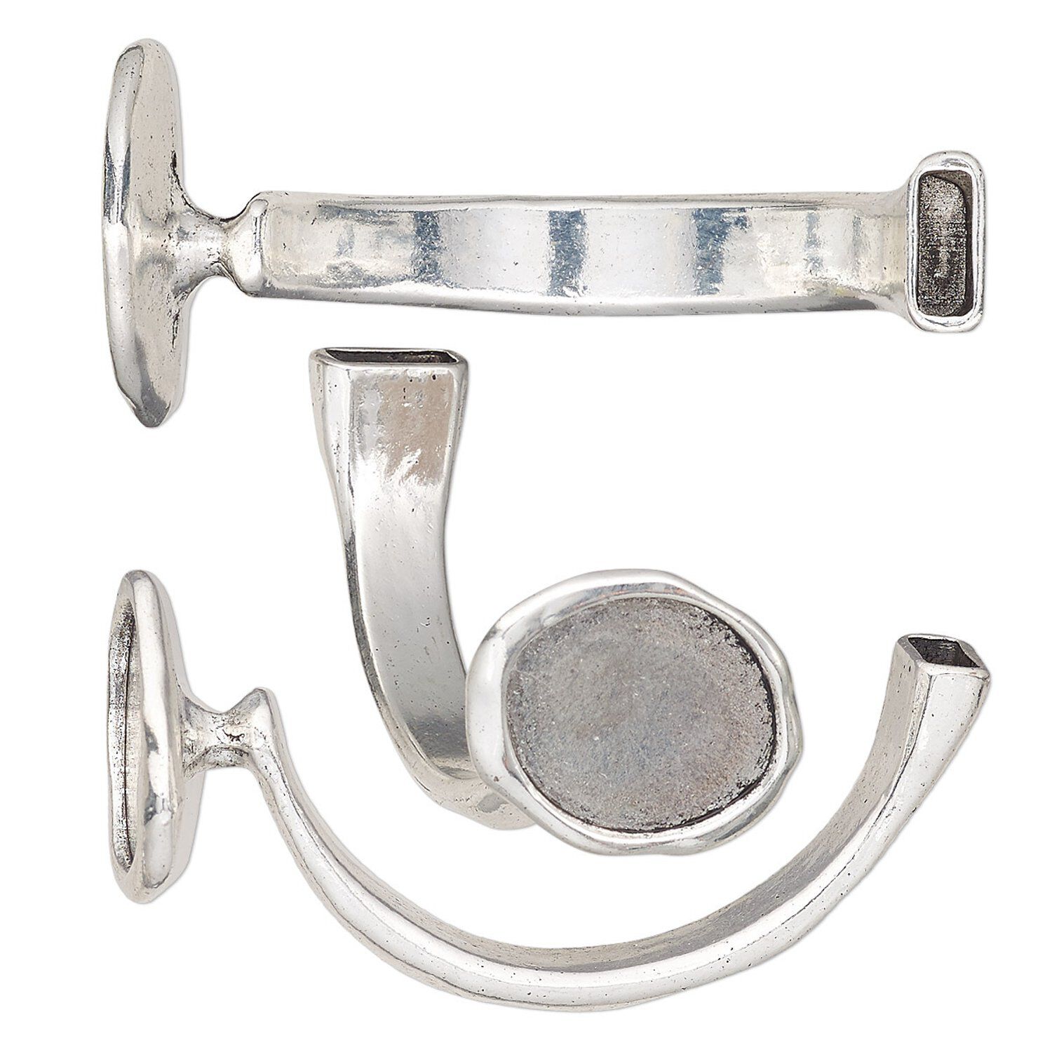 Bracelet component, antique silver-finished "pewter" (zinc-based alloy), 8-12.5mm wide with 28x21mm oval and 22.5x18mm non-calibrated oval setting, 45x23mm inside diameter with 10x3.5mm glue-in end. Sold individually.