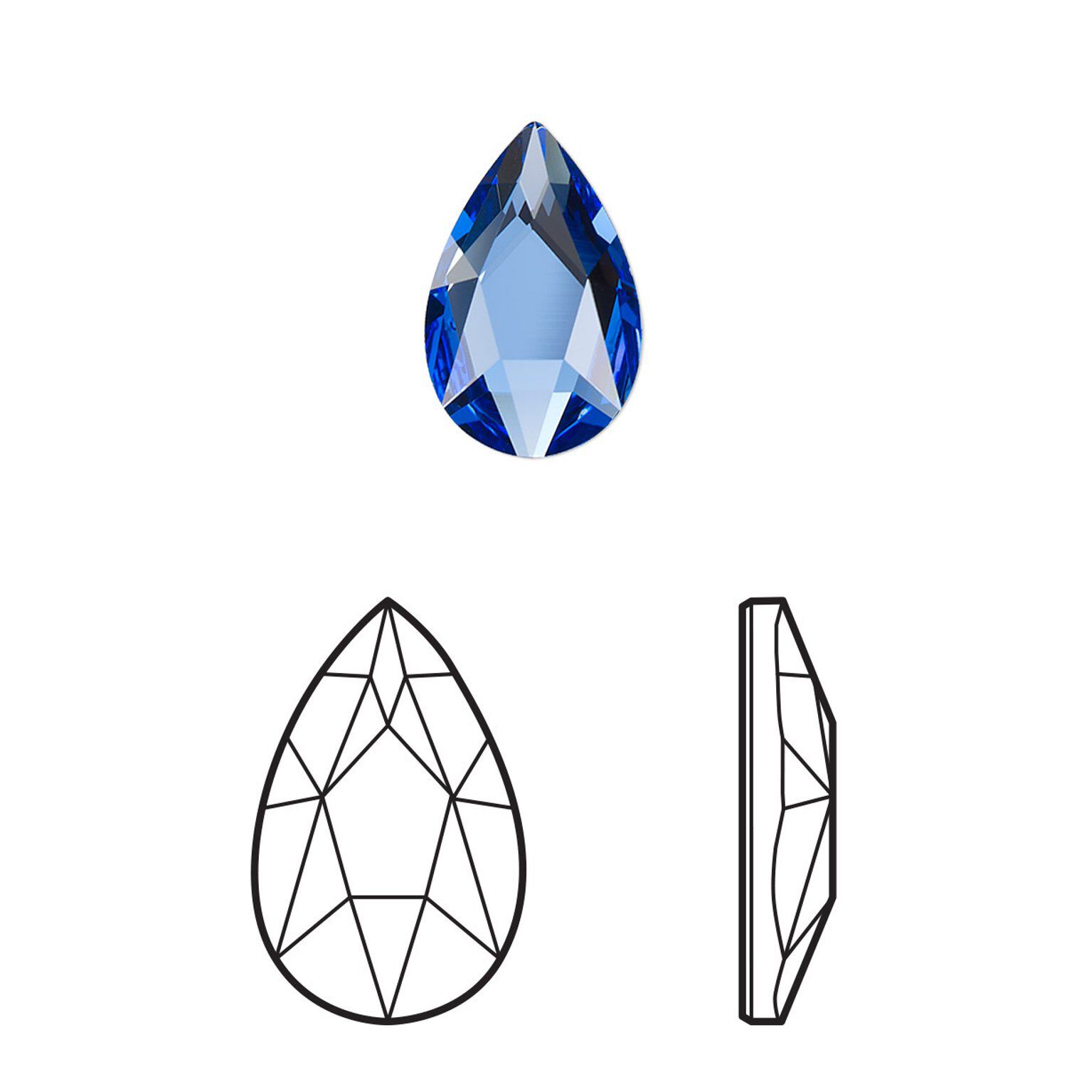 Flat back 24pk sapphire foil back, Crystal Passions® 14x9mm pear 2303