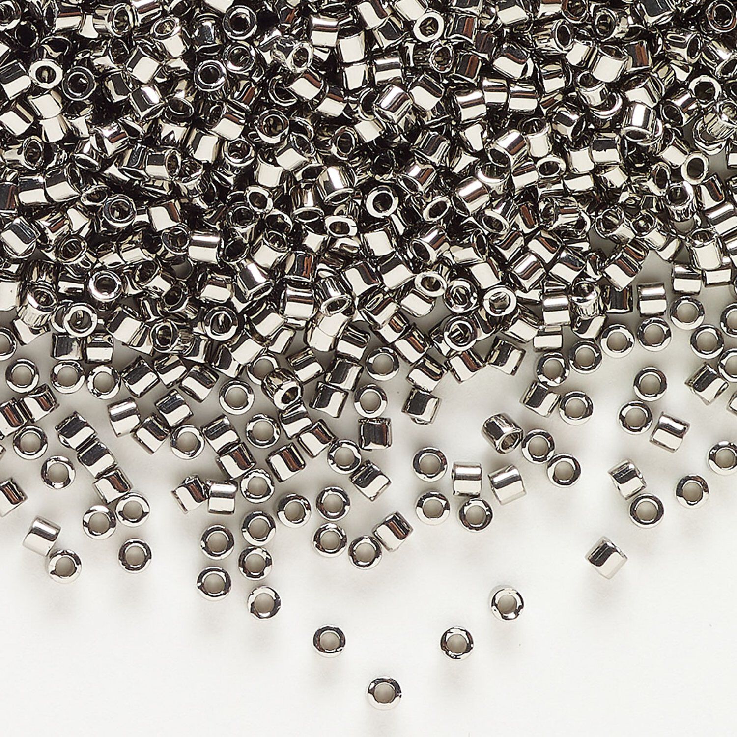 Seed bead, Delica®, glass, pkg/7.5g, #10 round, opaque nickel-plated (DBM-0021).