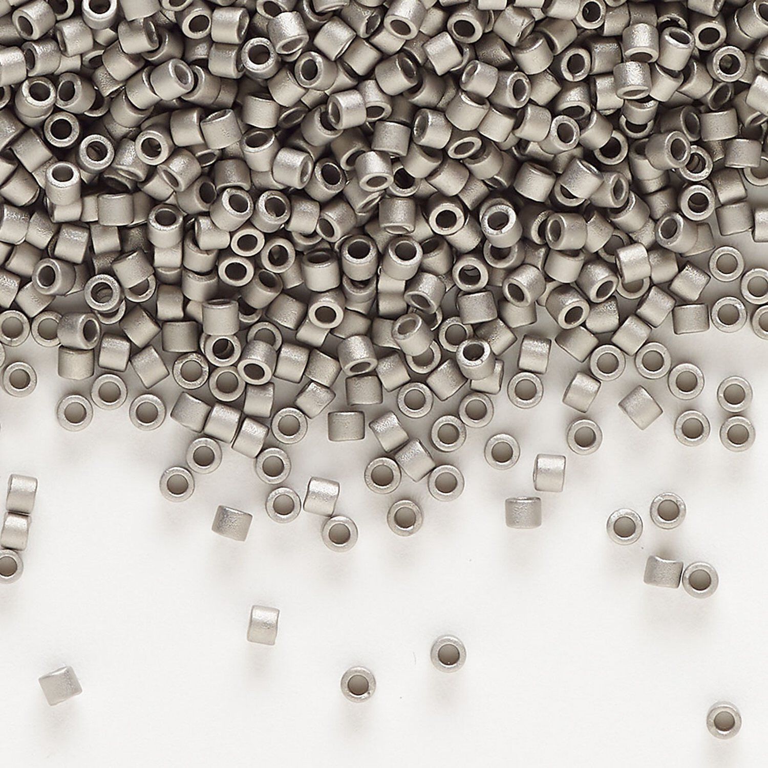 Seed bead, Delica®, glass, pkg/250g, #10 round, opaque matte nickel-plated (DBM-0321).