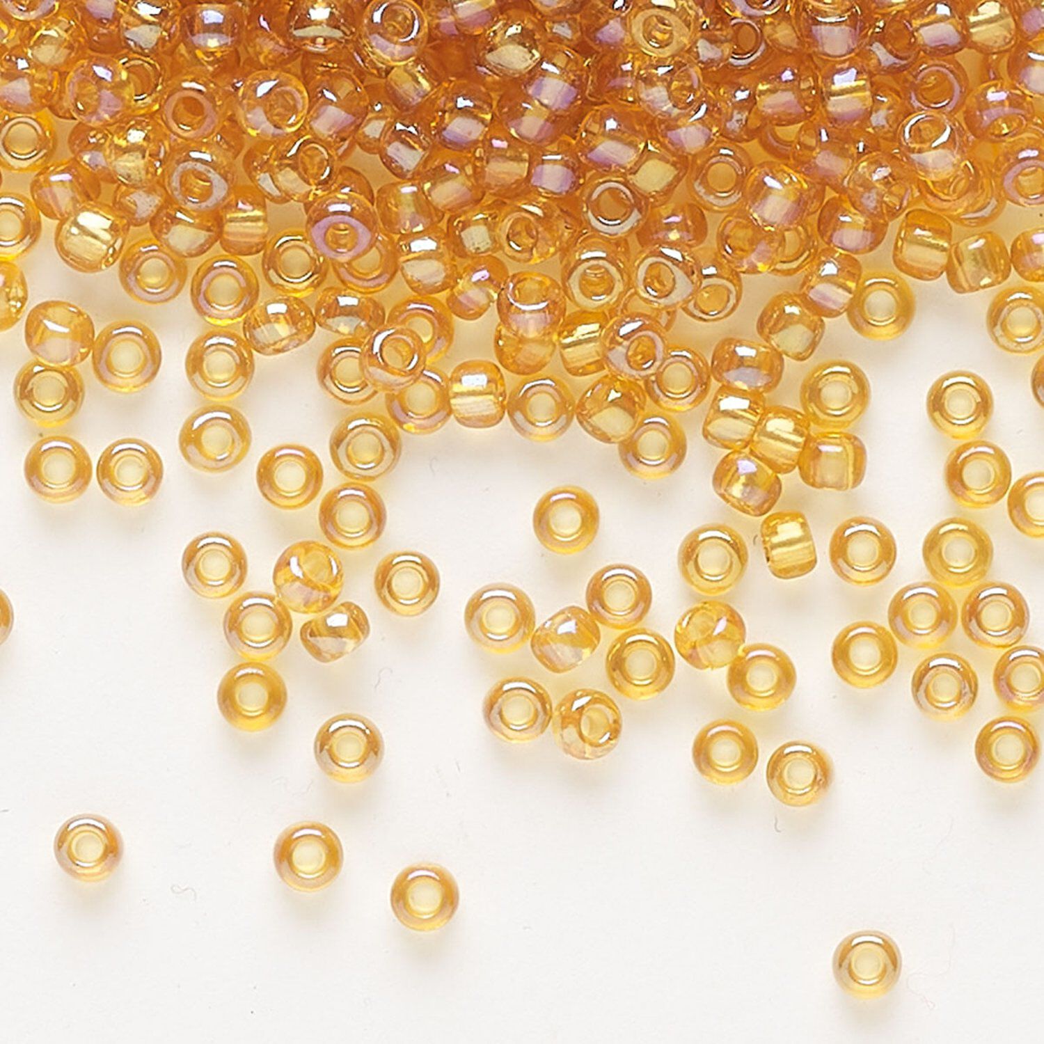 Seed bead, Preciosa Ornela Czech glass, pkg/50g, #8 rocaille, translucent rainbow topaz, (11050).