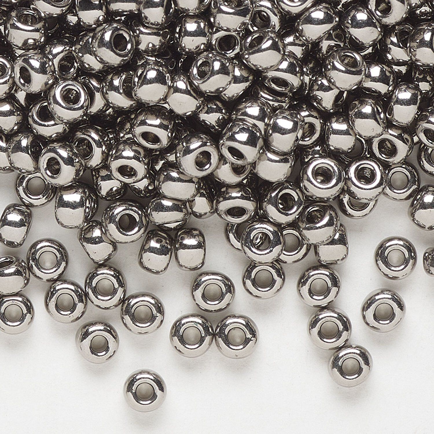 Seed bead, Miyuki, glass, pkg/4g, #6 rocaille, opaque nickel-plated (RR-190).
