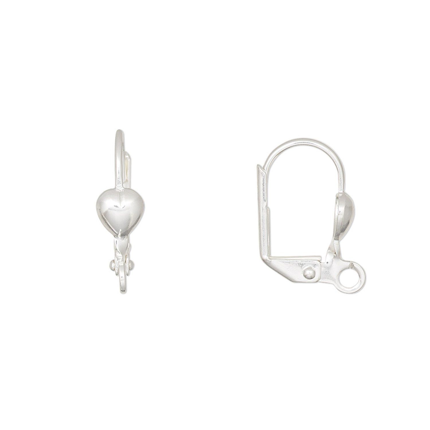 Ear wire leverback 1pkg10 silver-plated, 16mm / 5mm heart / open loop, brass 5 pair